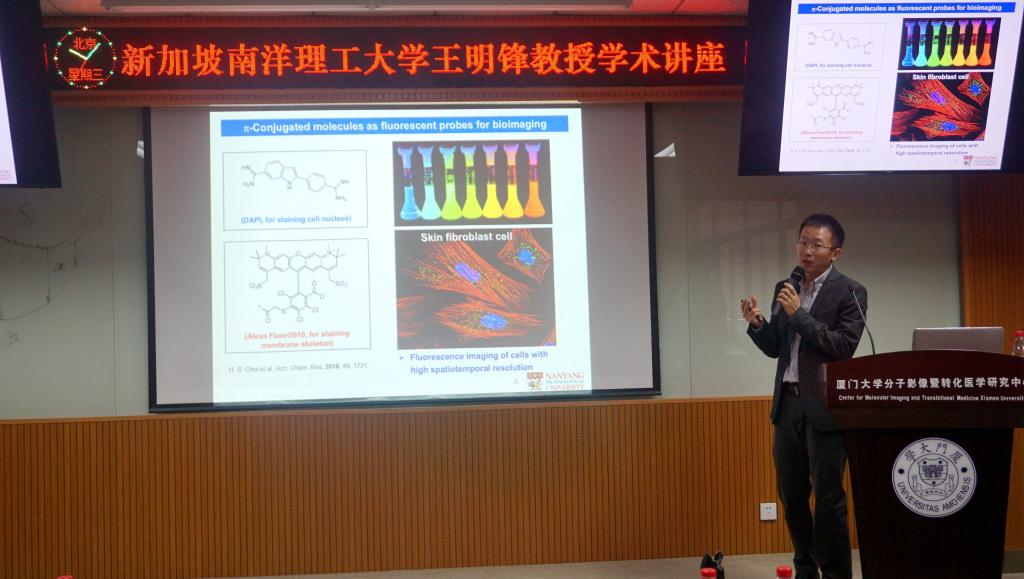 2017年12月13日,来自南洋理工大学的王明锋博士受邀来我中心做了题为《Bioinspired Fluorescent Polymers Synthesis, Processing and Applications》的学术讲座。讲座在410多功能报告厅举行。