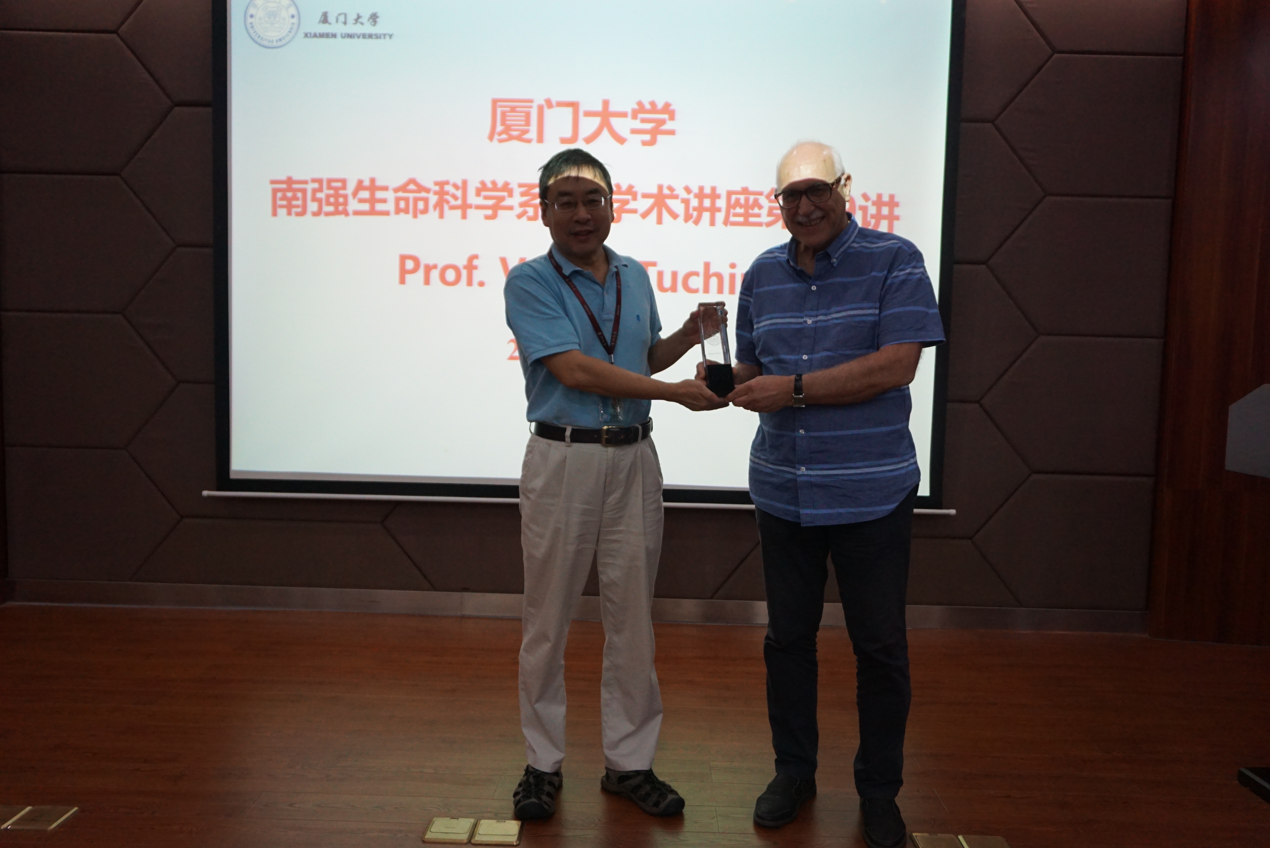 讲座伊始,赵勤俭副院长为Valery Tuchin教授颁发了厦门大学南强生命科学系列学术讲座纪念牌。讲座过程中,Valery Tuchin教授首先对其首创提出的组织光学及细胞与组织光透明的原理和机制进行了详细的讲解,充分展示了该方法在生物光子影像学的发展和优势;其次,作为国际生物光子学研究领域的发起人,Valery Tuchin教授先后介绍了定量化描述不同组织光学特性技术,以及其率先提出并发展的光散射与相干技术和偏振敏感的诊断技术;最后,Valery Tuchin教授对组织光透明技术在将来的临床发展中可能遇到的问题、安全性等进行了总结和展望,他认为该方法在神经科学领域、生物医学成像领域将会起到非常重要的作用,将在临床皮肤科学领域有广泛的应用。