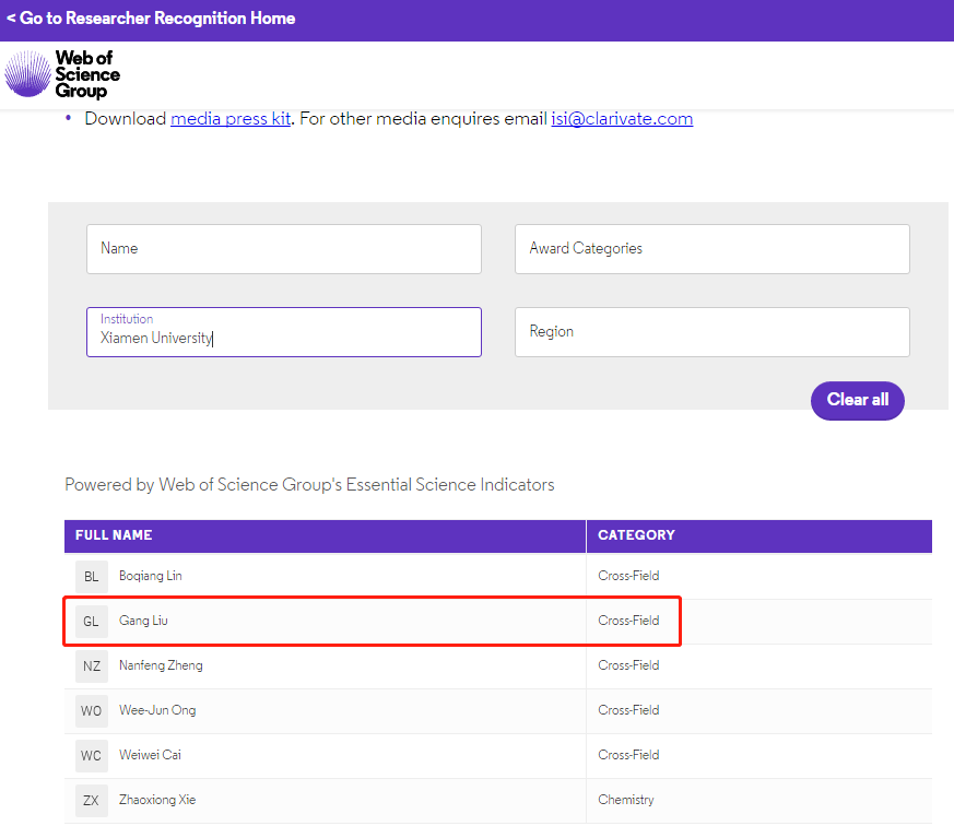 2019年11月19日,科睿唯安(Clarivate)发布了2019年度“高被引科学家”名单,入榜这份名单的自然科学家和社会科学家均发表了多篇高被引论文,其被引频次位于同学科前1%,彰显了他们在同行之中的重要学术影响力。我中心刘刚教授入选,为我校今年入选该名单的6位教授之一。