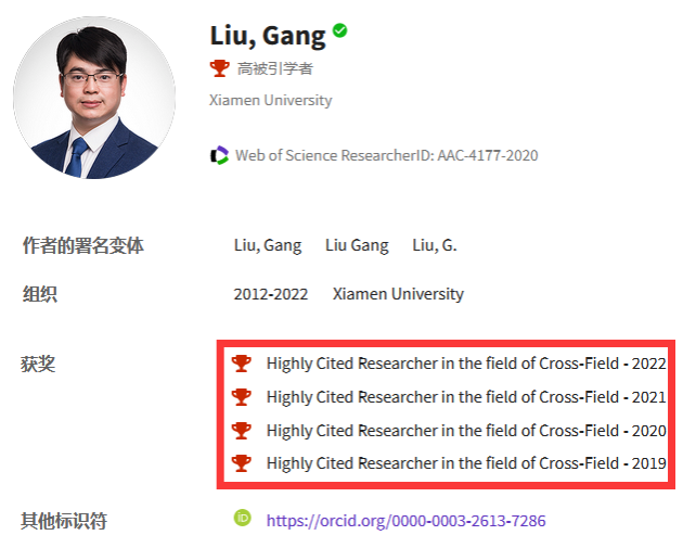2022年11月15日,科睿唯安公布了2022年全球高被引科学家(Highly Cited Researchers)榜单,我中心刘刚教授再次入榜(Cross-Field),这也是刘刚教授连续第四年(2019-2022)入榜。
