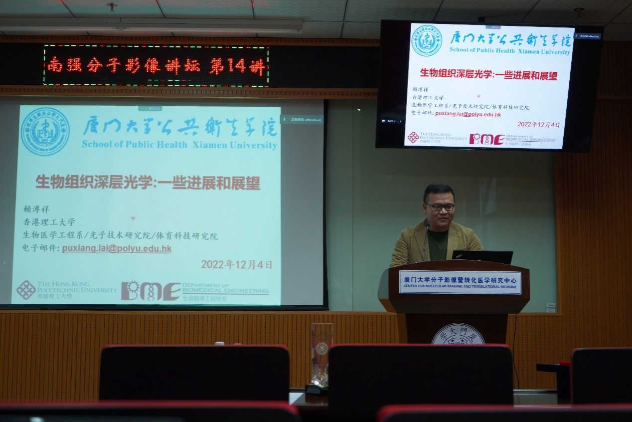 2022年12月4日,香港理工大学生物医学工程系赖溥祥博士受邀做客我中心《南强分子影像讲坛》系列讲座第14讲,并作了题为《生物组织深层光学:一些进展和展望》的主题讲座。讲座由中心赵庆亮老师邀请并主持,采用线上线下结合的方式进行。