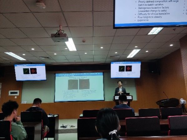 报告中,张琨雨副教授分享了很多当前自己课题组在超动态结构水凝胶调控三维培养细胞力学感知方面所取得的进展,并就水凝胶如何实现动态负载细胞这一问题,为在场师生答疑解惑。