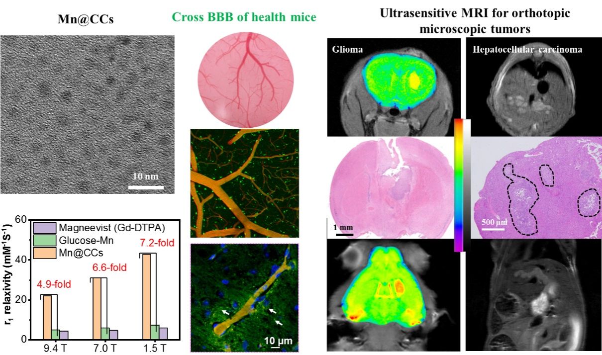 近日,我中心陈洪敏教授团队在磁共振影像探针研究和肿瘤早期诊断应用方面取得新进展,相关成果以“Carbonized paramagnetic complexes of Mn (II) as contrast agents for precise magnetic resonance imaging of sub-millimeter-sized orthotopic tumors”为题发表于《自然-通讯》期刊(Nature Communications, 2022, 13, 1938)。