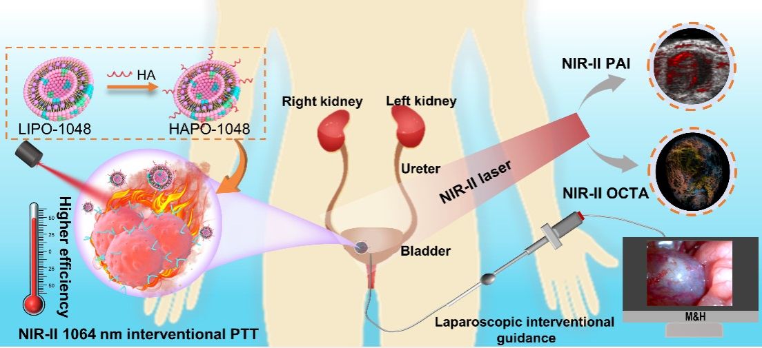 图1 近红外二区光学成像协同介入引导原位膀胱癌微创光热治疗策略