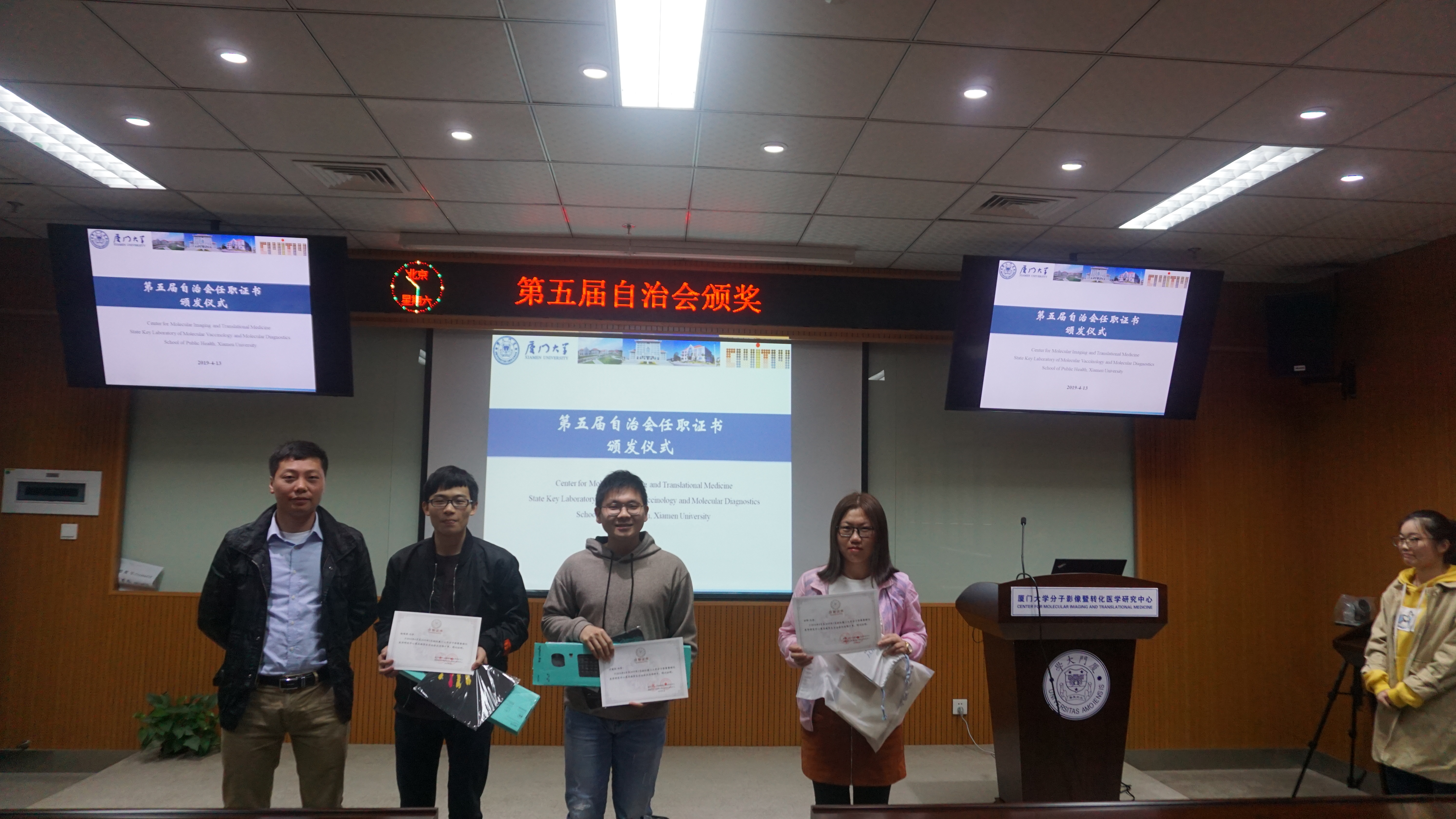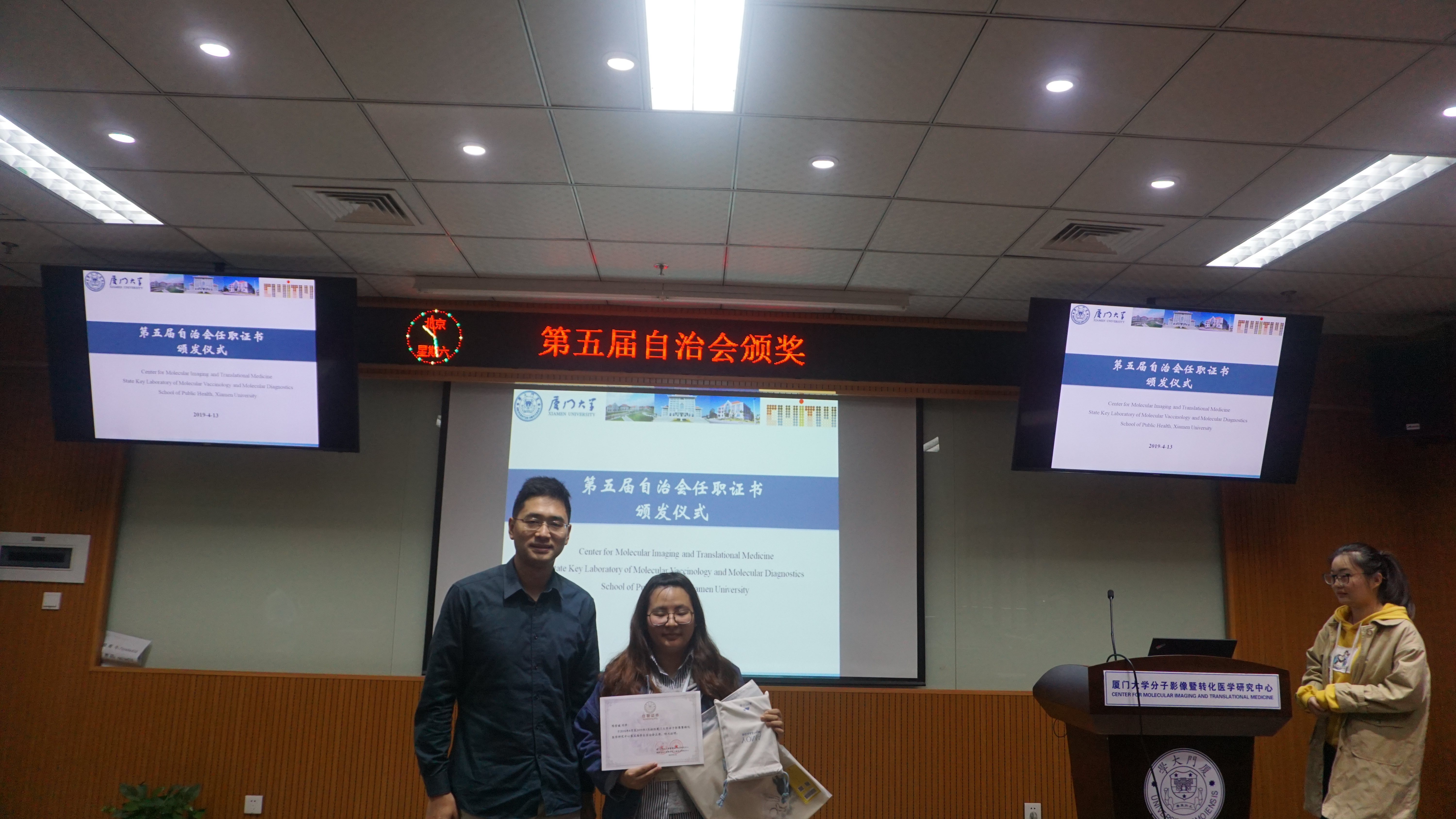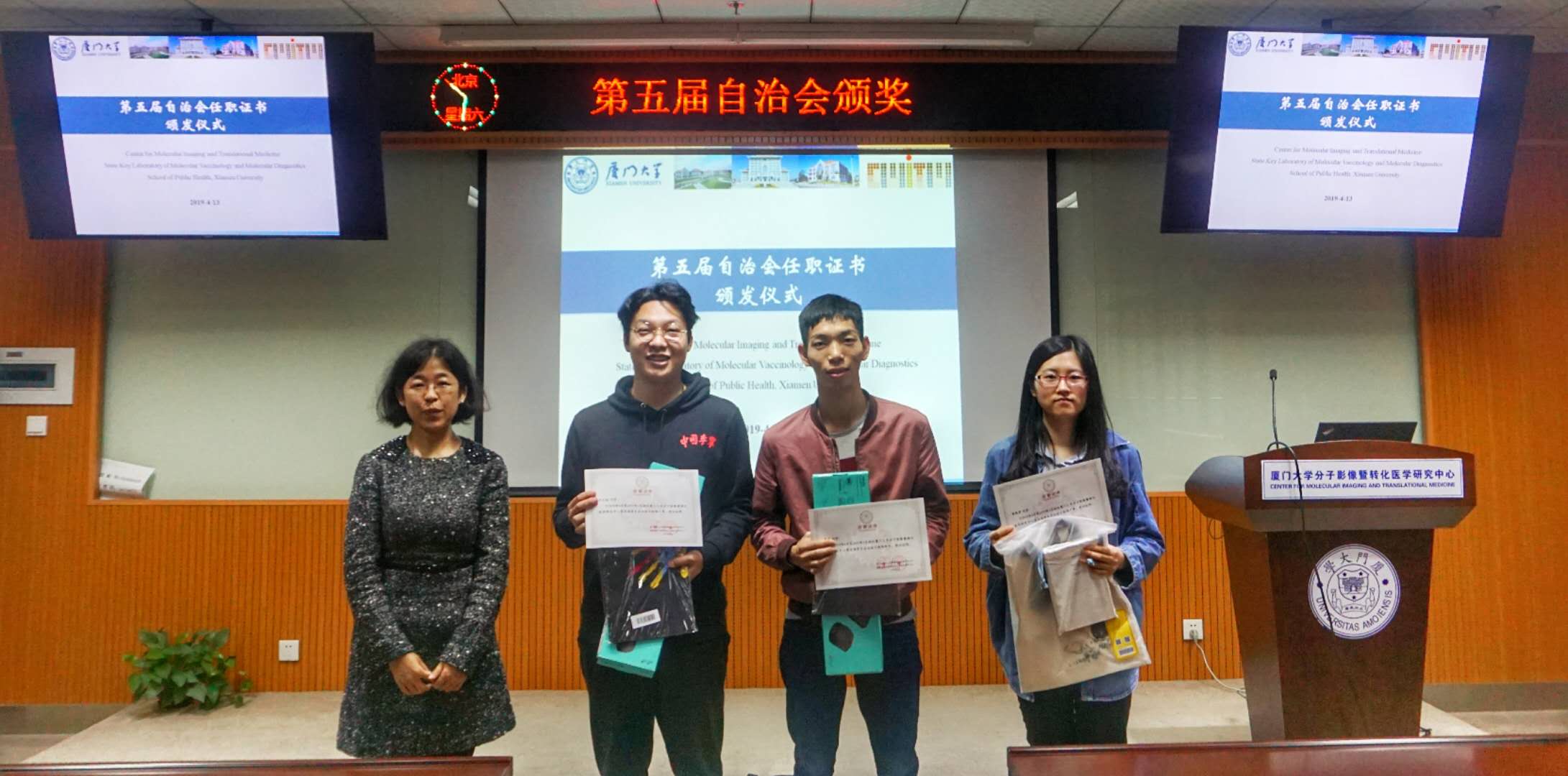 2019年4月13日,中心在分子影像中心410多功能报告厅举办了第五届学生自治会任职证书颁发仪式,本次颁发仪式由第六届自治会主席秦瑞雪同学主持。