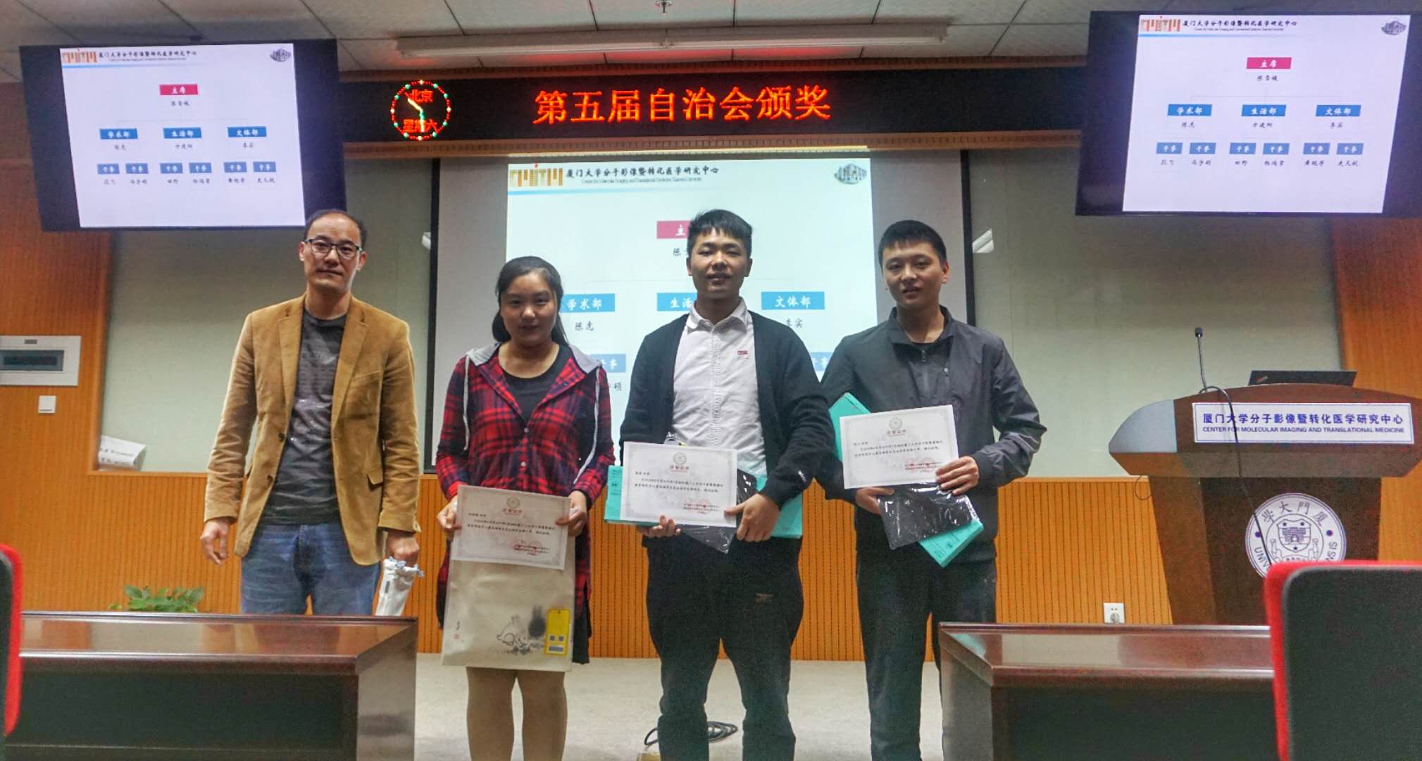 中心学生自治会成立于2014年,旨在服务中心全体老师及学生,为促进中心科研工作的更好发展。学生自治会中以主席为领导核心,内置学术部、生活部和文体部三个部门,每个部门各设有一名部长和两名干事,以实现中心学生自我管理、自我服务为目的,通过日常监督改善实验室卫生条件和科学研究环境,促进全体学生更加积极地投入到科研学习中。
