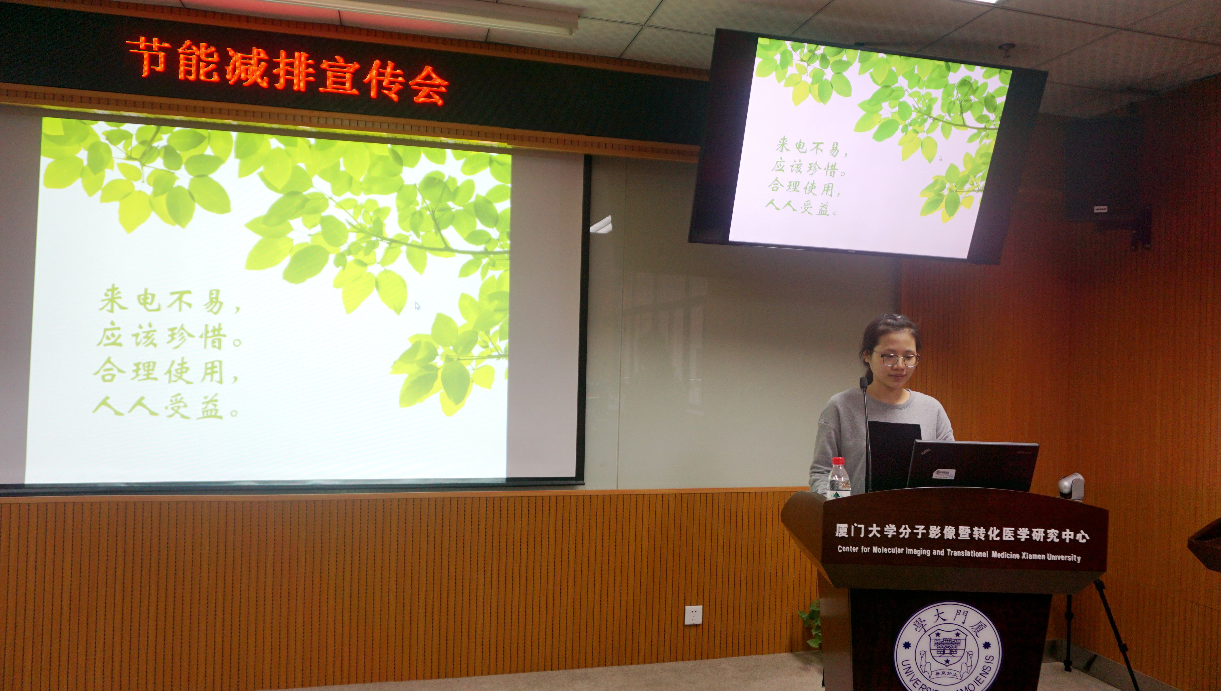 第一部分,以“我来总结中心水电使用情况”拉开序幕。首先,学生自治会主席洪华伟同学向全体师生做节能减排宣传会,详细介绍了中心2017年1月~9月的水电使用情况,以增进中心师生对目前水电使用情况的了解;其次,洪华伟同学总结了目前中心存在的各种浪费水电情况,并列举了一系列发生在同学们身边的实例,呼吁大家在日常的科研、学习及生活中,将节水节电视为己任,从随手关灯等小事做起,将节能减排落到实处。