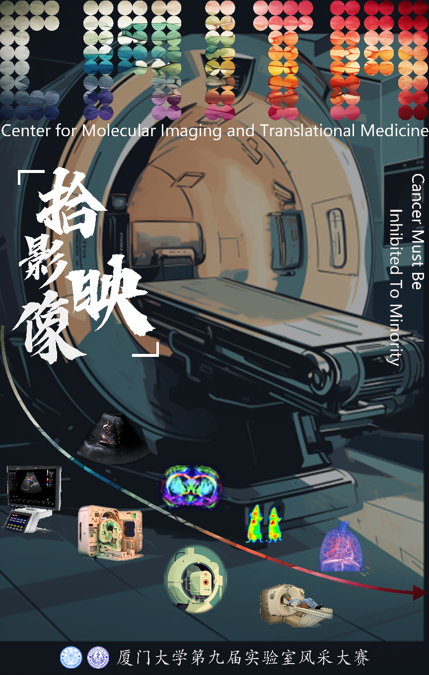 风采海报展示环节,我中心“拾影映像队”突显分子影像中心的核心指导思想以及科研领域。以MRI为背景,代表着中心特色。海报的下方按照技术的发展时间顺序陈列了超声造影、CT、microSPECT、PET/CT几种高端分子影像设备。在该环节,我中心学生代表队获得团队第三名的成绩。